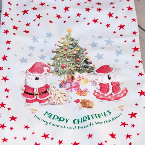 Barney Saves Christmas Tractor Ride Santa Stocking Size:Â 38.5cm x 65cm Your kids will love joining Barney and friends in their new adventure to help Santa save Christmas with our new collection, perfect for their imaginative minds.