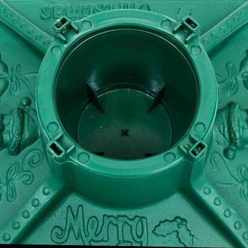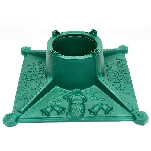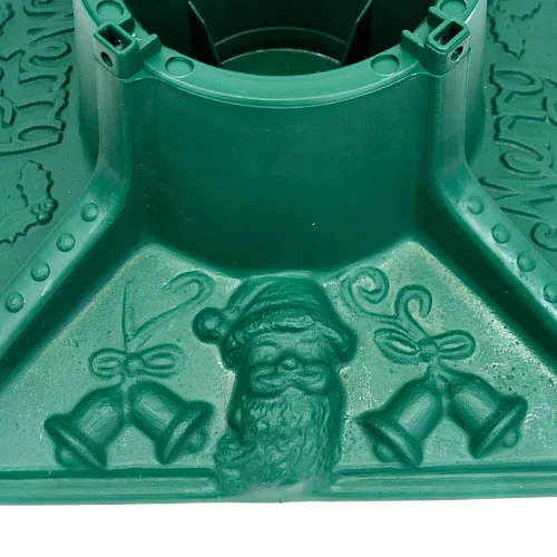 Green Christmas Tree Stand Size: 80cm x 20cm H Make an impression this year with the display of your tree on this decorative tree stand. It features an embossed Merry Christmas, Santa and festive bells