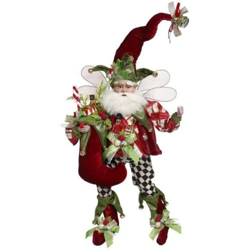 Mark Roberts Stocking Fairy Size: 38cm This good looking fairy assists in delivering little goodies to your Christmas stocking year after year. He is dressed in a red, gold and green coordinated outfit with checked black and white pants. He holds a stocking filled with beautiful toys in his hand. Release Year: 2021 Mark Roberts Limited Edition Christmas Collectibles pair elegant design with holiday whimsy. Sure to be cherished as heirlooms, the collectibles figurines wear fine costumes, carry ornate accessories, and feature quality craftsmanship. Every Mark Roberts Limited Edition Christmas Collectible comes with a Certificate of Authenticity and an invitation to register for our own Christmas Elves Collectors Club.