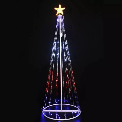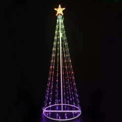 RGB Digital Light Tree Size: 1.5m This stunning RGB LED Digital Christmas tree will be the focal point of any holiday light display, indoors or out. These stunning LED feature trees have a central minimalist pillar and a spherical base that is simple to conceal with gifts or garden mulch, and they are adorned with vertical string lights that culminate in a giant, dazzling star at the tree top. These lights may be used for a long time outside, and their many outstanding features can be operated remotely. Product Details: Light Colour: RGB Lead Wire (m): 3 Cable Colour: Black Power Source: Plug-in Pcs per Carton: 4pcs/Ctn. Indoor or Outdoor: Indoor & Outdoor Use (Keep the Plug Undercover) IP Rating: IP44 Product Features: 16 Single Colours + Colour Changing 6 Functions:Fade, Jump, Strobe, In Waves, Speed, Dimmer. Timer & Memory Function: Built-in 2 kinds of timer Remote Control Included