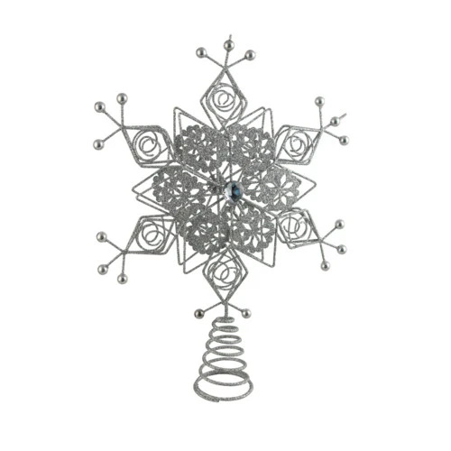 Silver Wire Snowflake Tree Topper Size: 34cm This ornament serves an important purpose during the holiday season. On its highly polished surface, reflections of the Christmas tree and the lights on the mantle look stunning, which improves the overall appearance of any Christmas tree.If you’re looking for the ideal ornament to put on top of your Christmas tree, look no further than this magnificent snowflake tree topper.