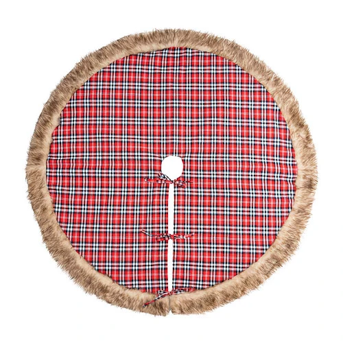 Tartan Faux Fur Tree Skirt Red Size: 109cm This Christmas tree skirt is the ideal finishing touch for that ‘Wintry Christmas’ tree. Featuring red tartan with brown fur trimÂ